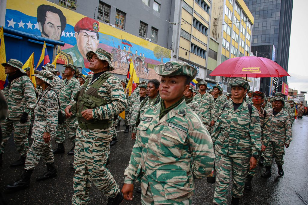«Las mismas manos productivas que tenemos son las manos que agarran los fusiles, los tanques, los misiles para defender esta tierra sagrada de cualquier imperio invasor, agresor«, expresó Maduro. A la par que manifestó que en Venezuela «luchamos por la paz».