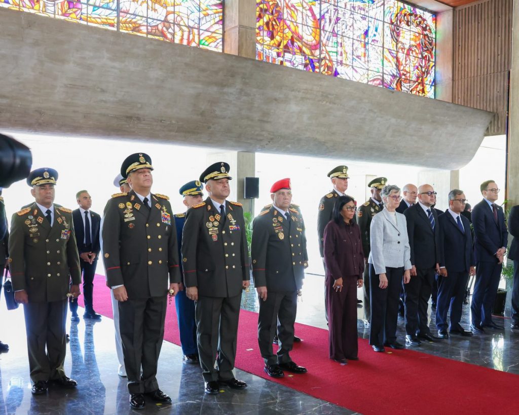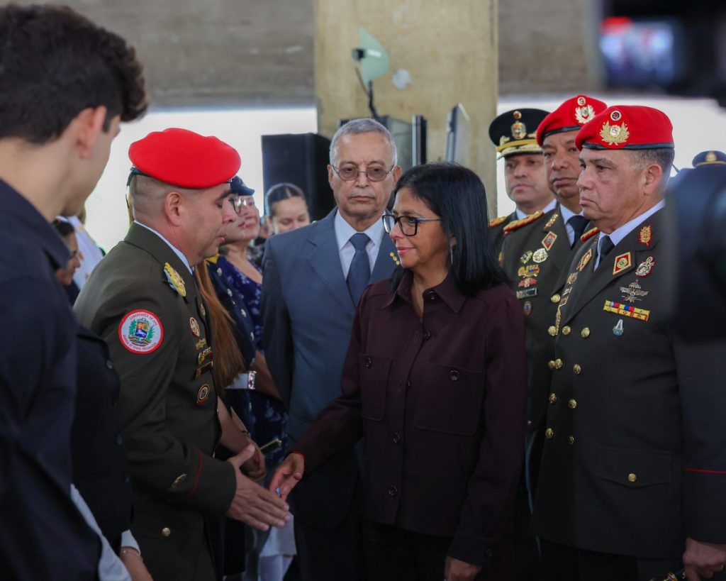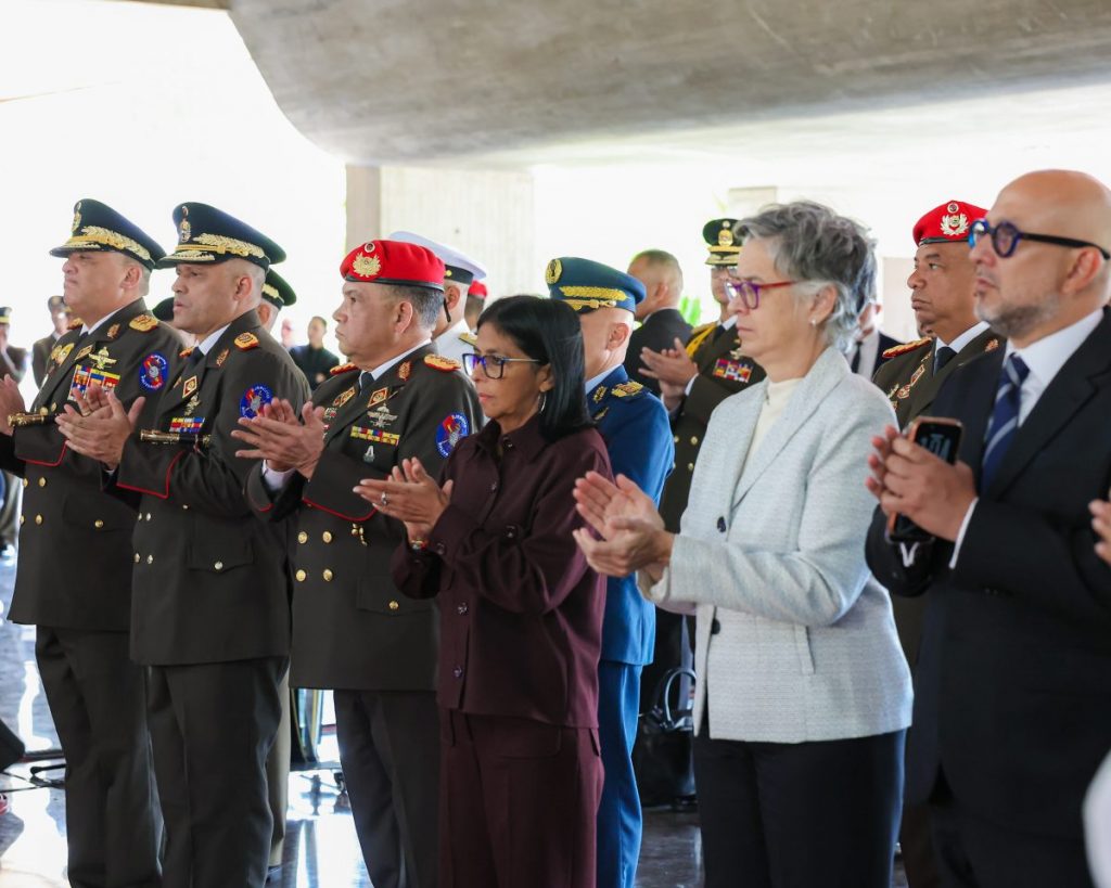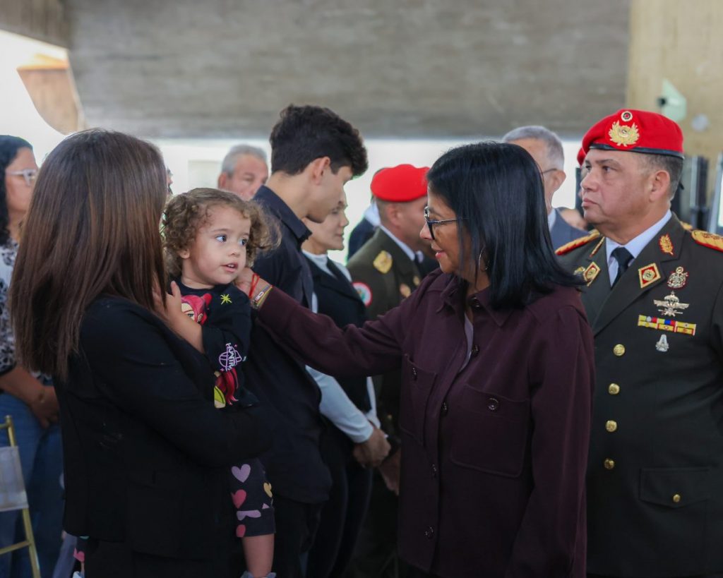 Caracas, 22 de abril de 2026.- La presidenta (E) de Venezuela, Delcy Rodríguez, acompañó este miércoles en Fuerte Tiuna la Capilla Ardiente en honor al Cnel. Helmer David Prato Veloz, quien fue ascendido post mortem al grado de General de Brigada. Durante el acto solemne, el Estado venezolano rindió tributo a la trayectoria del oficial, quien se desempeñó como director del Centro de Adiestramiento de la Fuerza Armada Nacional Bolivariana (FANB), siendo pieza clave en la formación y profesionalización de los componentes militares.