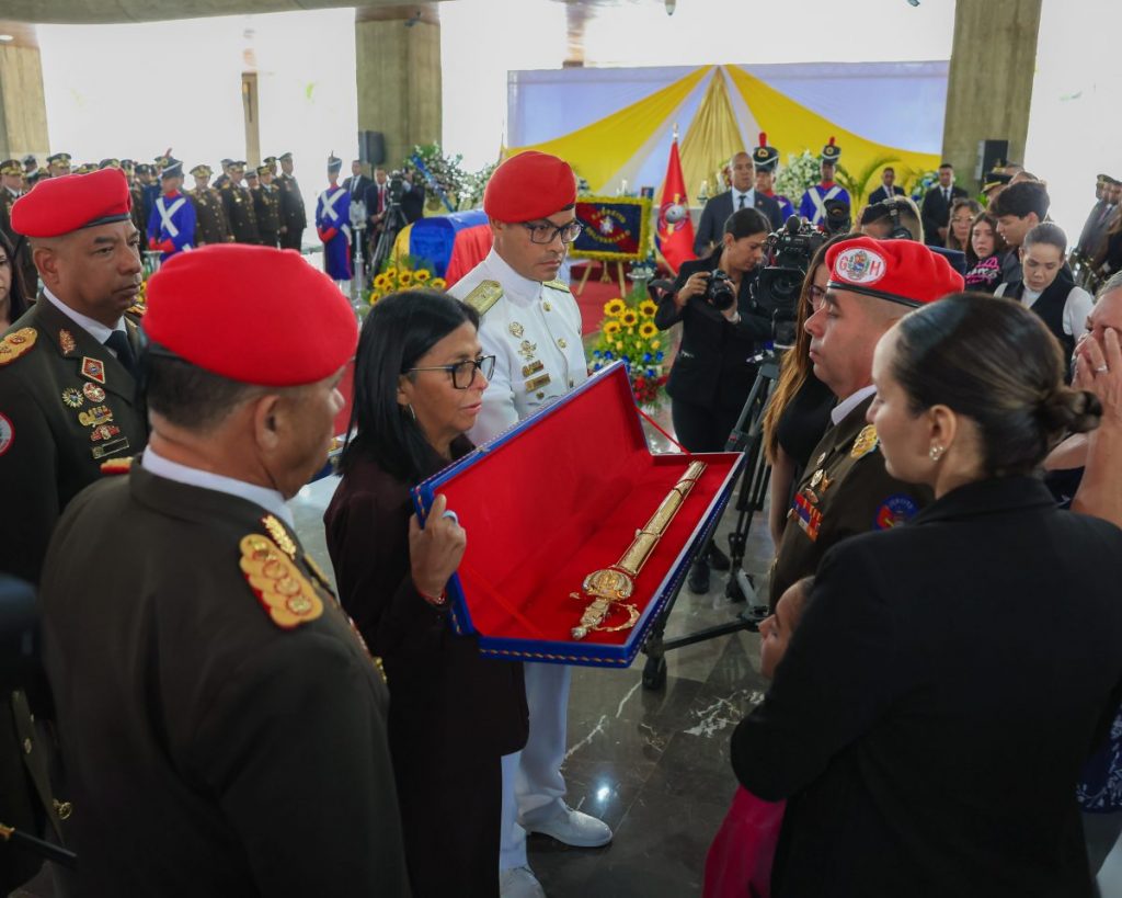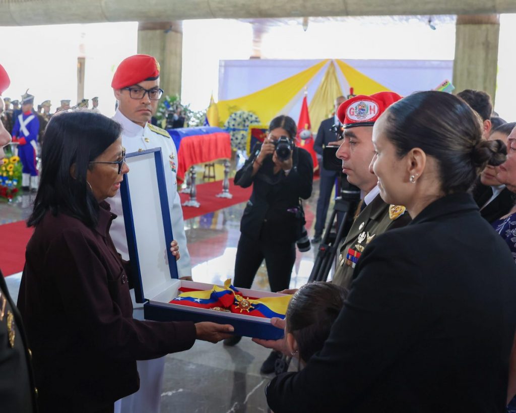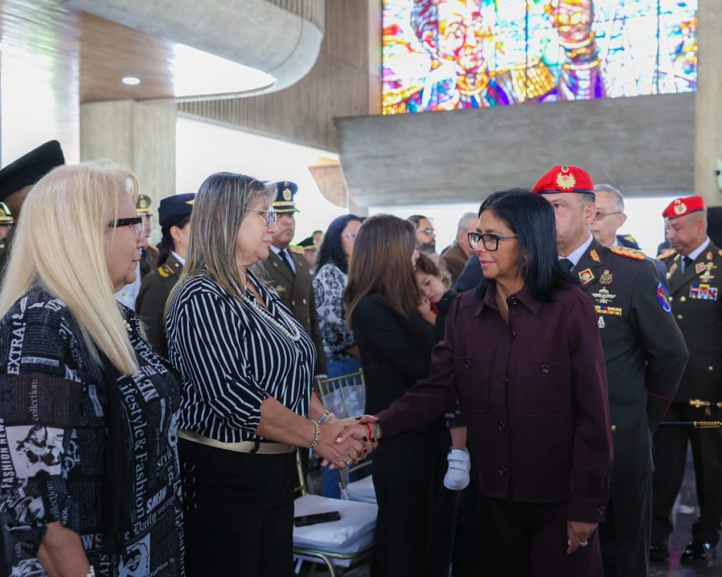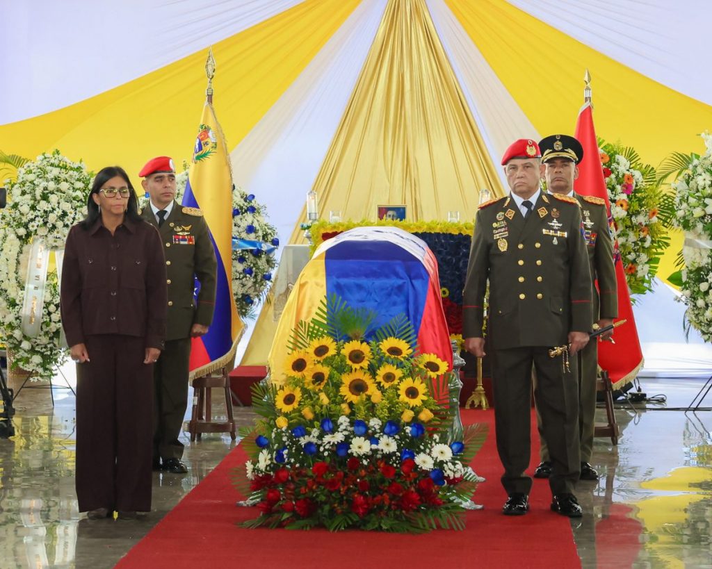 La Presidenta (E) Delcy Rodríguez rinde honores fúnebres al Coronel Helmer David Prato Veloz