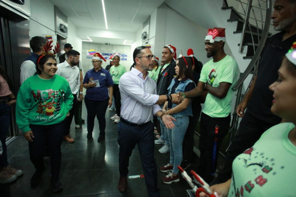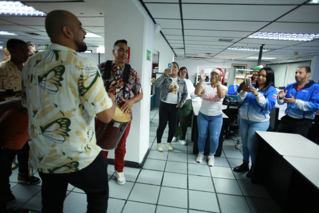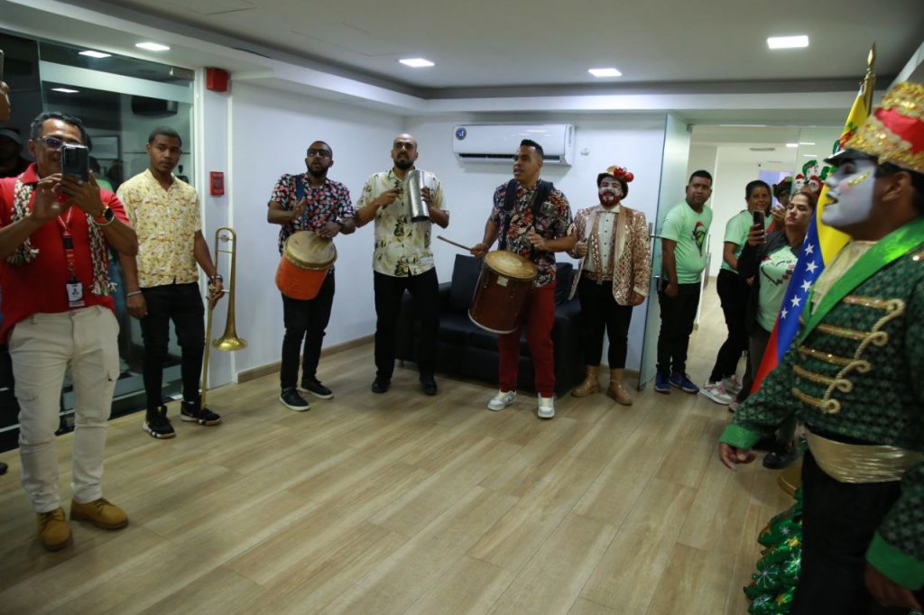 El ambiente laboral se transformó en una alegre celebración con el ritmo contagioso de una parranda navideña, que acompañó la algarabía de todos los presentes. La música, las risas y los mensajes de esperanza se fusionaron para crear un momento de genuina fraternidad y calor venezolano.