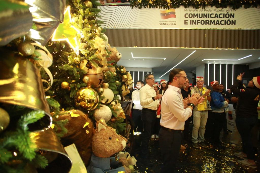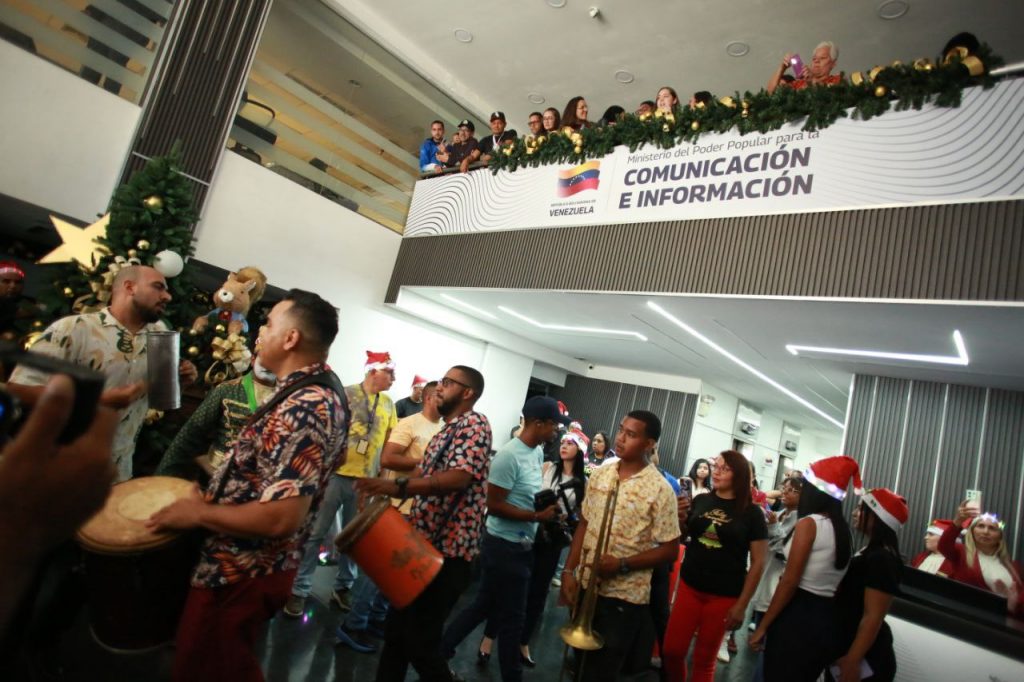 El vicepresidente sectorial de Comunicación, Cultura y Turismo, Freddy Ñáñez, junto a los trabajadores y trabajadoras del MIPPCI, festejaron con mucha alegría la llegada de la Navidad