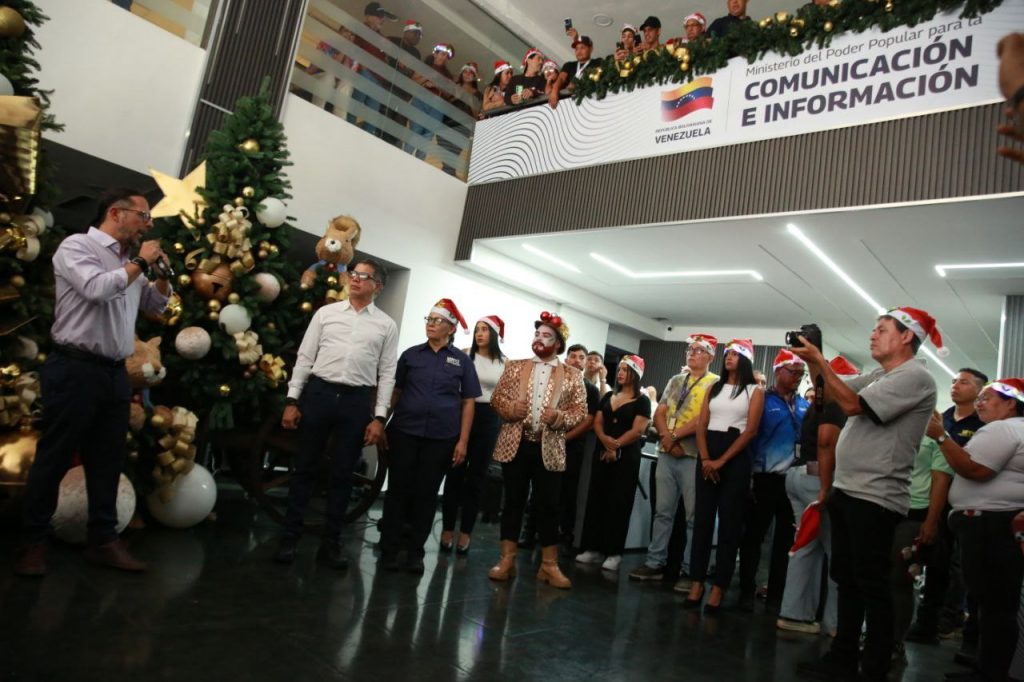 Caracas, 1 de octubre del 2025: Este miércoles, el vicepresidente sectorial de Comunicación, Cultura y Turismo, Freddy Ñáñez, festejó el tradicional «Grito de Navidad» junto a la entusiasta participación de las trabajadoras y trabajadores del Ministerio del Poder Popular para la Comunicación y la Información (Mippci); con gran espíritu festivo, el evento marcó el inicio oficial de las festividades decembrinas en la institución.