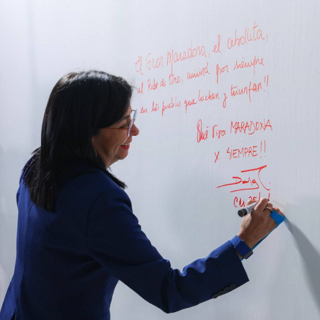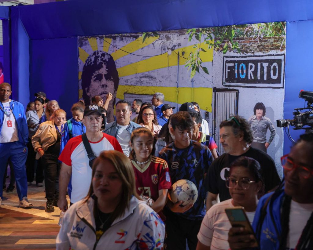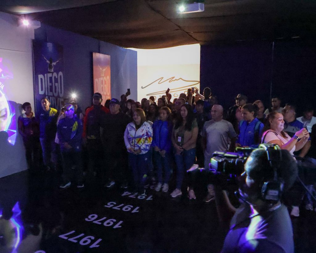 Caracas, 24 de octubre de 2025. La vicepresidenta Ejecutiva, Delcy Rodríguez, dio inicio a la exposición Expo Maradona «Diego Vive» en la Galería de Arte Nacional, un lugar interactivo para todas las edades donde, a través de recursos tecnológicos, se revive la trayectoria del legendario futbolista Diego Armando Maradona, considerado por muchos como el más de la historia. Rodríguez compartió su entusiasmo por esta muestra itinerante que lleva el legado del Cebollita y del Pibe de Oro alrededor del mundo.