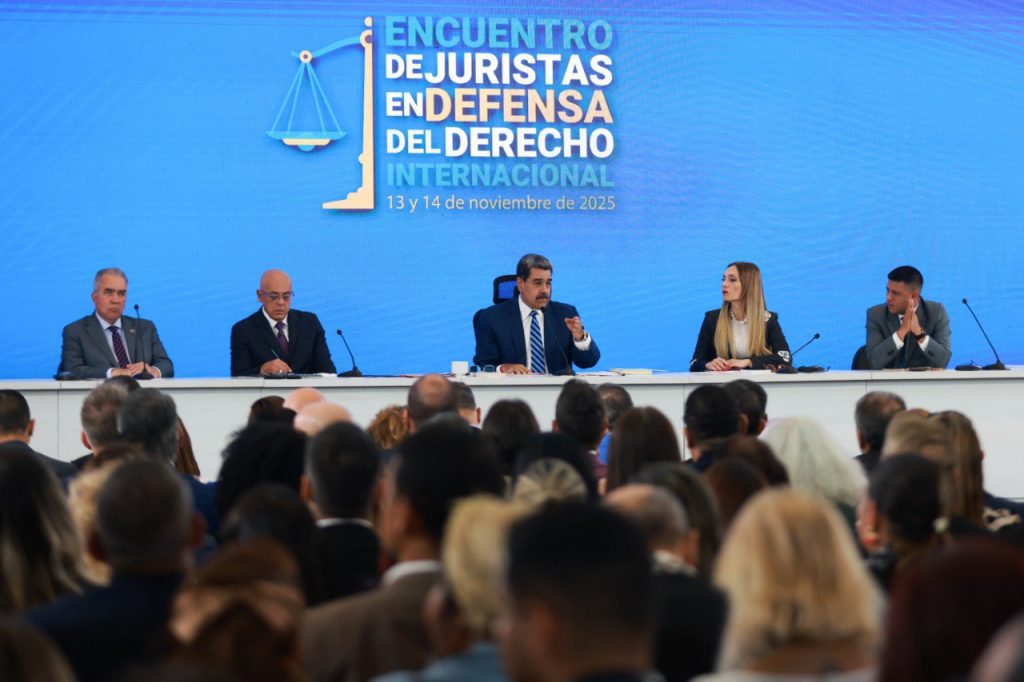 Caracas, 14 de noviembre del 2025: Este viernes, el presidente de la República Bolivariana de Venezuela, Nicolás Maduro Moros, clausuró una destacada jornada en el marco del «Encuentro de Juristas en Defensa del Derecho Internacional», evento que se celebra en Caracas del 13 al 14 de noviembre.