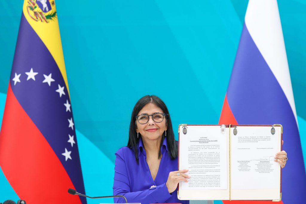 Caracas, 27 de noviembre del 2025. – La vicepresidenta Ejecutiva, Delcy Rodríguez, y el vicepresidente del Gobierno ruso, Dimitri Chernyschenko, encabezaron la XIX Comisión Intergubernamental de Alto Nivel (CIAN) Rusia-Venezuela, vía videoconferencia, donde suscribieron 42 nuevos acuerdos.