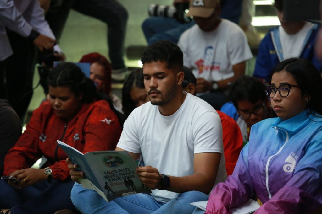 Por su parte, la presidenta de la Gran Misión Venezuela Joven, Génesis Garvett, expresó que la juventud defiende la verdad del país, a través del manual Calles, Redes, Medios, Paredes y Radio Bemba, para continuar el fortalecimiento de la guerrilla comunicacional y visibilizar la realidad de la nación bolivariana ante el mundo.