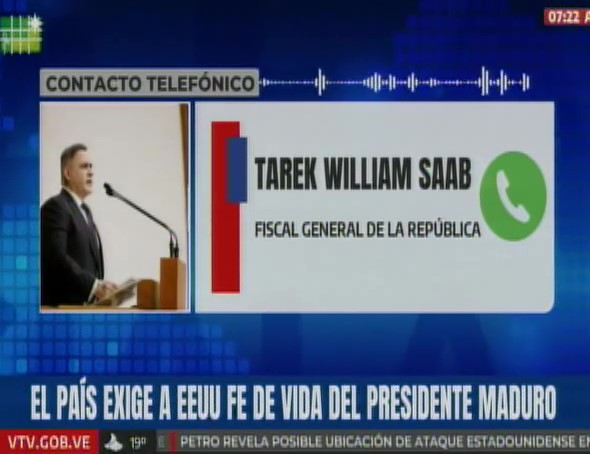 El fiscal general, Tarek William Saab, condenó el vil y cobarde ataque perpetrado por Estados Unidos y anunció investigaciones por ‘crímenes de guerra’