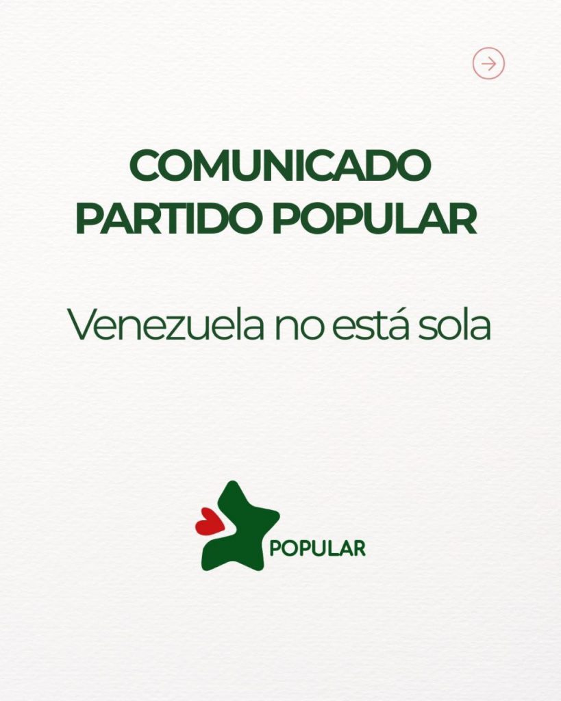 Asimismo, el Partido Popular instó a los gobiernos de América Latina y el Caribe a asumir un rol activo y responsable, impulsando una movilización política y diplomática regional en defensa de la paz, la soberanía de Venezuela y los derechos de su pueblo.