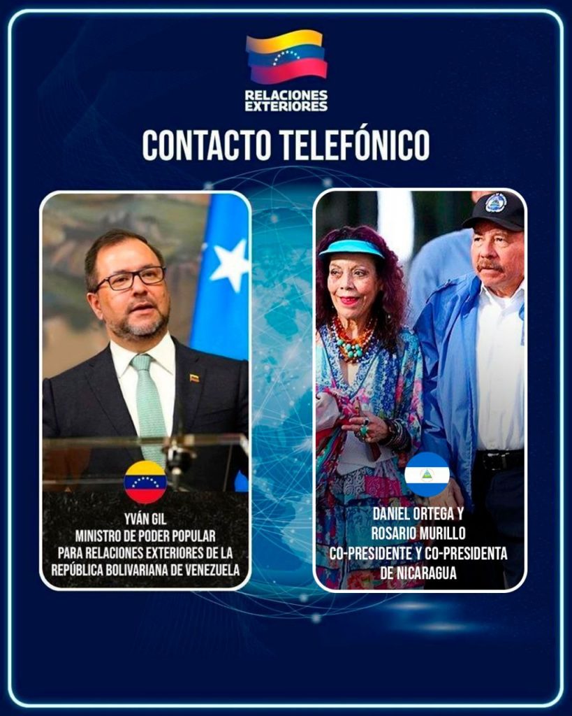 “Nuestros hermanos Ortega y Murillo han dejado claro que Venezuela no está sola. Juntos reafirmamos que nuestra región será siempre soberana, libre y pacífica, tal como lo soñaron nuestros libertadores”, destacó el Canciller Gil.