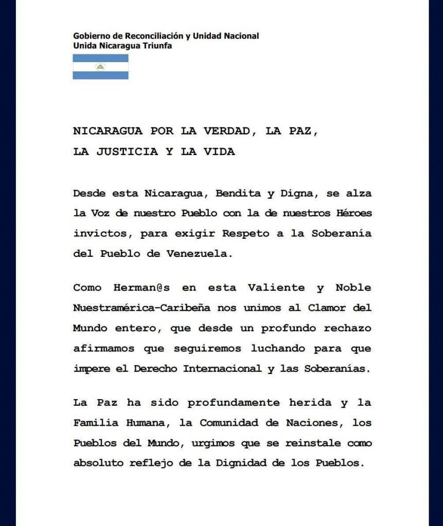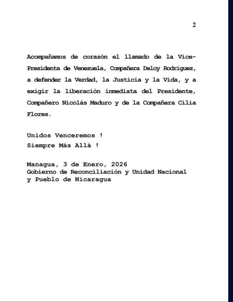 El Gobierno venezolano agradeció el respaldo histórico de Nicaragua frente a las amenazas externas, subrayando que ambos países continuarán trabajando en unidad para fortalecer la integración y la paz en el marco de mecanismos como la CELAC, el ALBA-TCP y la PETROCARIBE.