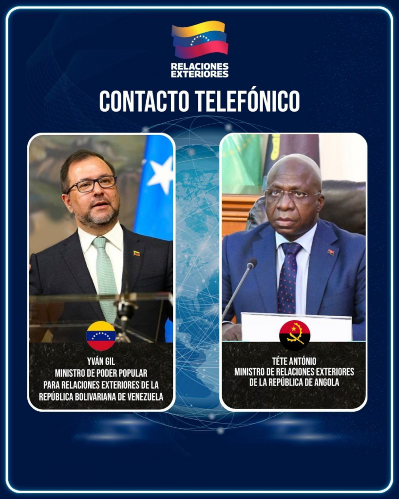 Del mismo modo, el canciller Gil sostuvo un contacto telefónico con el ministro de Relaciones Exteriores de Angola, Tete António, para denunciar formalmente la incursión militar ejecutada por los Estados Unidos contra el territorio venezolano.