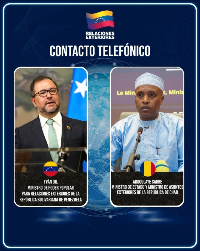 El ministro del Poder Popular para Relaciones Exteriores, Yván Gil, sostuvo un contacto telefónico con su homólogo de la República de Chad, Abdoulaye Sabre Fadoul, con el fin de consolidar el apoyo internacional ante las recientes agresiones externas contra la nación.