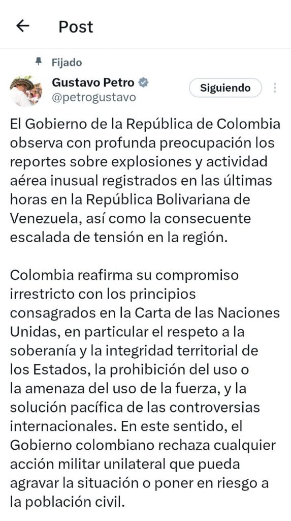 “El Gobierno de Colombia ha dado un paso firme en defensa de la paz regional y el derecho internacional al exigir que el Consejo de Seguridad detenga estas agresiones contra Venezuela”, afirmó el canciller Gil, quien agradeció el respaldo de Bogotá y reiteró el compromiso de Caracas con el diálogo diplomático.