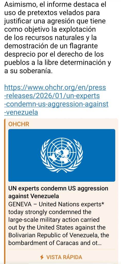 Expertos de la ONU condenan agresión militar contra Venezuela y denuncian violación del derecho internacional