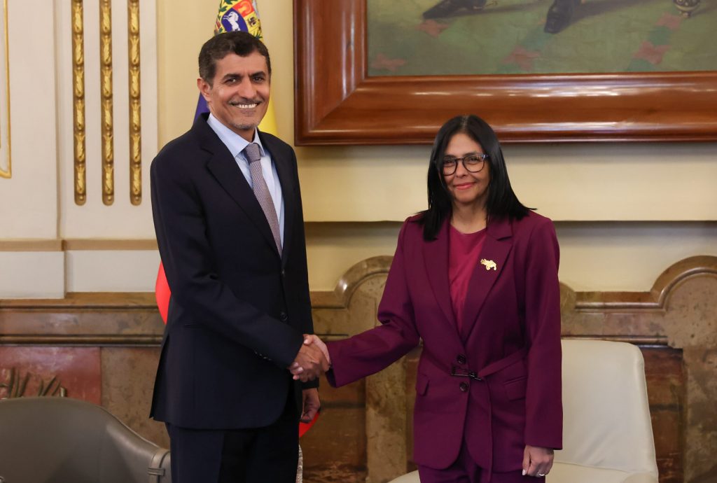 Caracas, 13 de enero de 2026.– La presidenta (E) de la República Bolivariana de Venezuela, Delcy Rodríguez, se reunió este martes con el enviado especial del presidente de los Emiratos Árabes Unidos, Su Excelencia Ali Mohammed Hammad Al Shamsi, en el Palacio de Miraflores, en Caracas. Este encuentro forma parte de la agenda diplomática que el Gobierno venezolano ha mantenido esta semana con representantes de diversas naciones, en el marco de la Diplomacia Bolivariana de Paz y el respeto al Derecho Internacional.