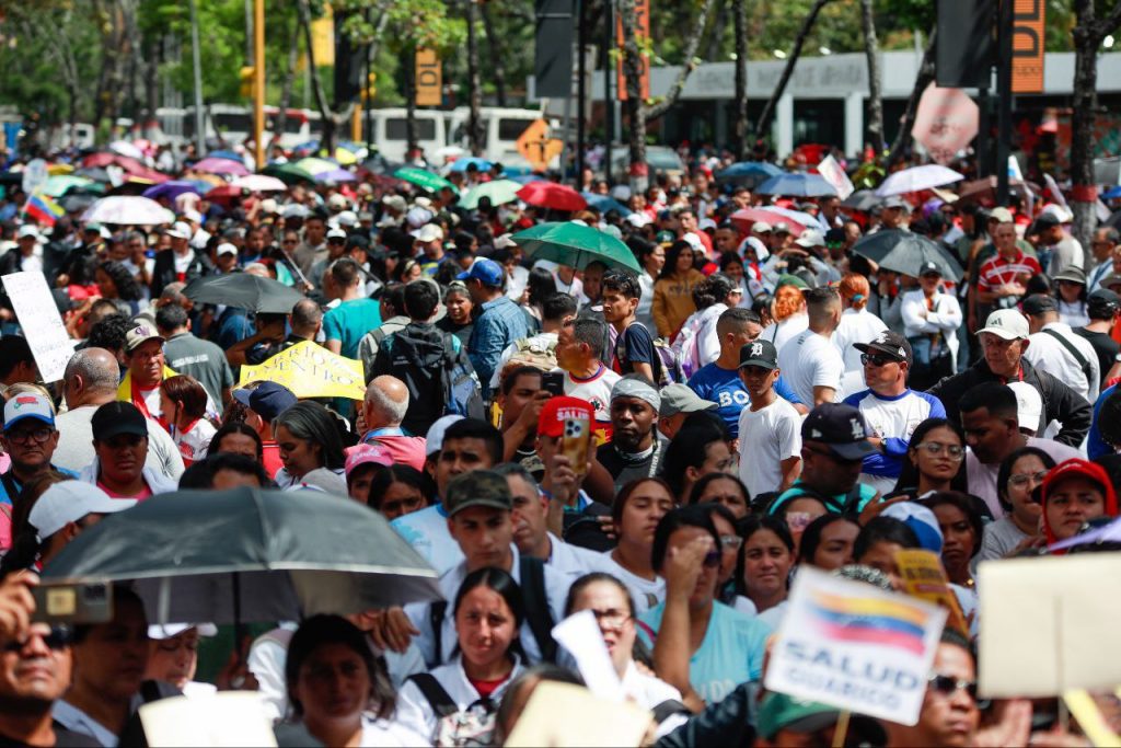 Los trabajadores del sector Salud tomaron este jueves las calles del municipio Sucre, en el estado Miranda, en una populosa «Gran Marcha» por la defensa de la soberanía y exigir la libertad del presidente de la República, Nicolás Maduro Moros, y de la primera combatiente, Cilia Flores.
