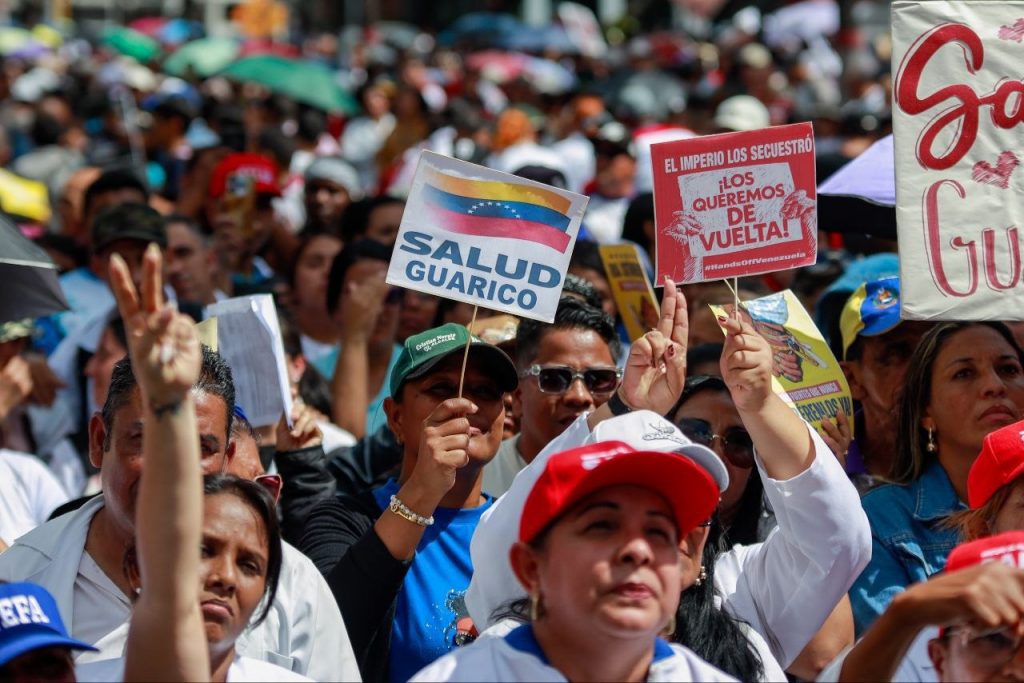 Los trabajadores del sector Salud tomaron este jueves las calles del municipio Sucre, en el estado Miranda, en una populosa «Gran Marcha» por la defensa de la soberanía y exigir la libertad del presidente de la República, Nicolás Maduro Moros, y de la primera combatiente, Cilia Flores.