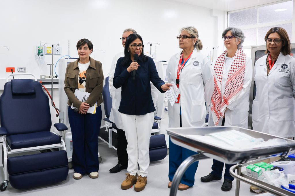 Este martes, la presidenta encargada de la República Bolivariana de Venezuela, Delcy Rodríguez, inauguró el moderno Servicio de Nefrología del Hospital Universitario de Caracas. La obra contempla la rehabilitación total de 1.000 metros cuadrados equipados con tecnología de punta, destinados a fortalecer la atención de pacientes con patologías renales. Durante el recorrido, la mandataria estuvo acompañada por la vicepresidencia sectorial de Ciencia, Tecnología, Educación y Salud, Gabriela Jiménez, el director del hospital, Dr. Luis Lira Arocha, y la jefa del servicio, Dra. Anabela Arminio, quienes supervisaron las áreas de hemodiálisis y cuidados especializados.