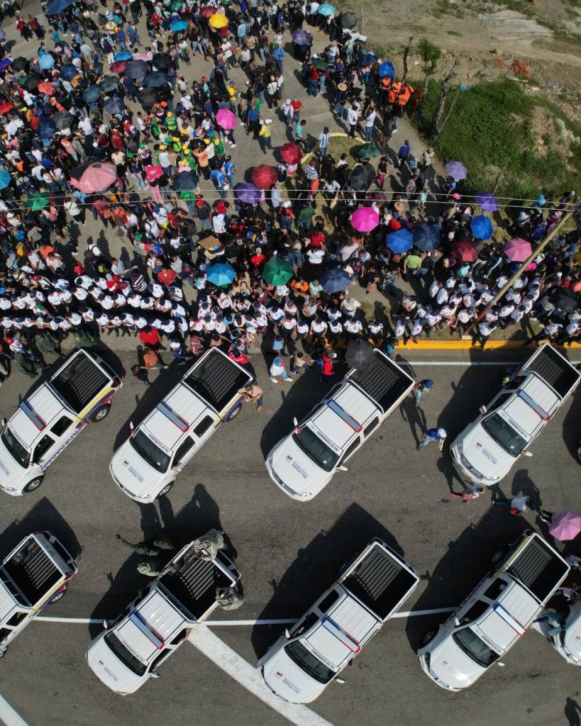 Durante su intervención, el Vicepresidente Cabello fue enfático sobre el alcance de esta entrega para el bienestar del pueblo trujillano: “Se están entregando 55 unidades patrulleras, carros, camionetas, en este caso para el estado Trujillo pero también estamos entregando 442 unidades motorizadas que van a estar aquí”, puntualizó, reafirmando que el despliegue obedece a la instrucción del Presidente Constitucional Nicolás Maduro de territorializar la seguridad ciudadana a través del poder comunal.