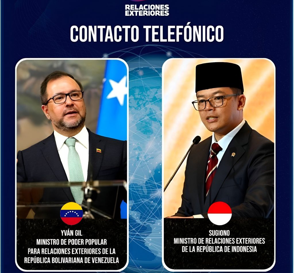 Como parte del fortalecimiento de las relaciones bilaterales, el Gobierno de Venezuela, a través de su canciller de la República, Yván Gil, sostuvo un productivo encuentro con el ministro de Relaciones Exteriores de la República de Indonesia, Sugiono, con el objetivo de profundizar la agenda bilateral y los mecanismos de cooperación de mutuo beneficio.
