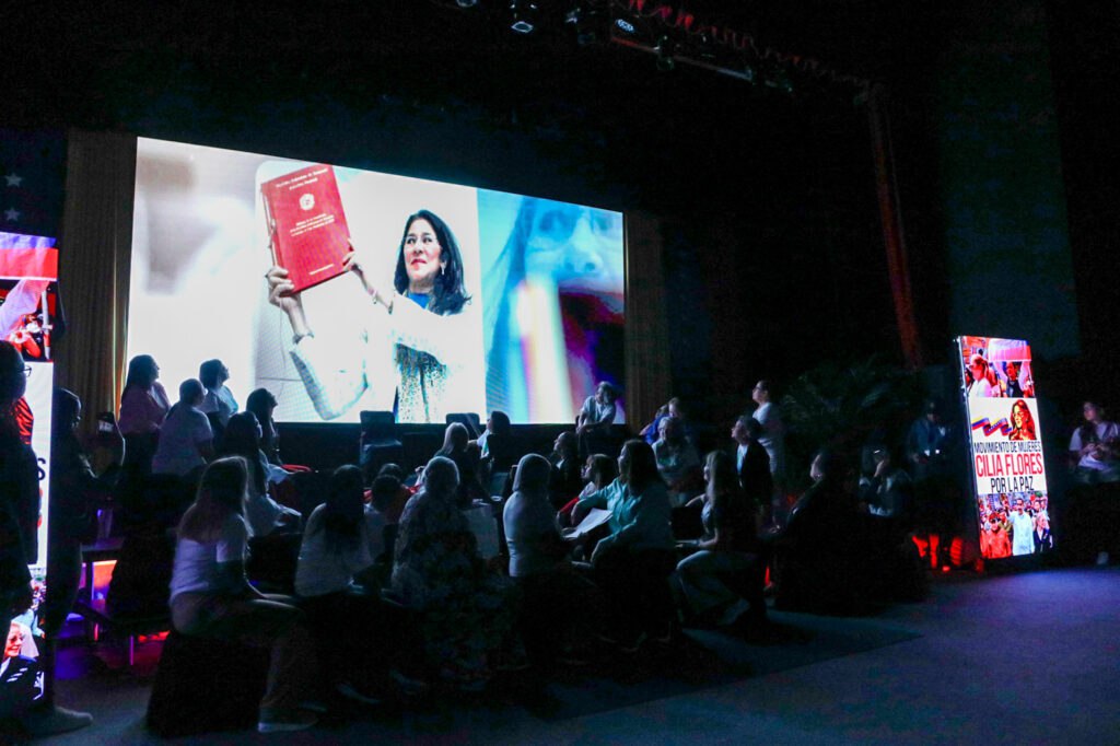 El Teatro Simón Bolívar de Caracas fue el escenario del pasado viernes 20 de febrero para la instalación del «Movimiento de Mujeres Cilia Flores por la Paz». El acto contó con el respaldo de cientos de lideresas de todo el país y brigadas internacionales provenientes de México, España, El Salvador, Ecuador, Brasil y Argentina, quienes manifestaron que las mujeres venezolanas cuentan con su apoyo y solidaridad absoluta.
