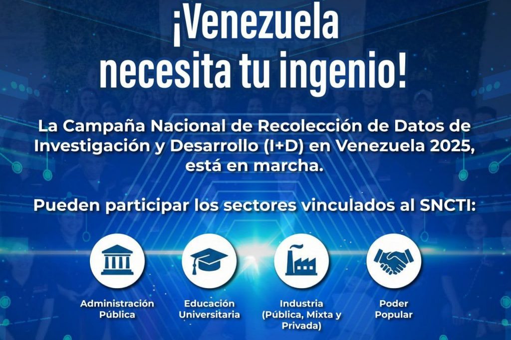 Desde el Observatorio Nacional de Ciencia, Tecnología e Innovación (ONCTI), la ministra del Poder Popular para la Ciencia y Tecnología (MINCYT), Gabriela Jiménez, anunció el lanzamiento de la Campaña Nacional de Recolección de datos de Investigación y Desarrollo (I+D) 2025. La iniciativa tiene el objetivo de conocer, organizar y visibilizar los aportes del Sistema Nacional de Ciencia, Tecnología e Innovación.