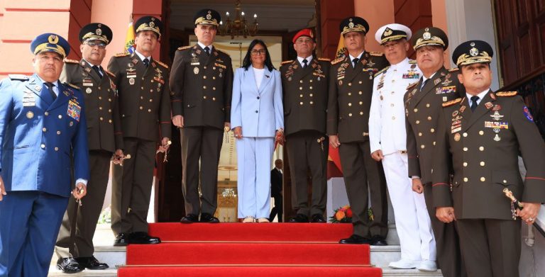 En este sentido, la Presidenta (E), Delcy Rodríguez, destacó: «hoy recibí en el Palacio de Miraflores al GJ. Vladimir Padrino López y al Alto Mando Militar saliente, a quienes expresé mi reconocimiento y agradecimiento por su valía, lealtad y compromiso al servicio de nuestro país».
