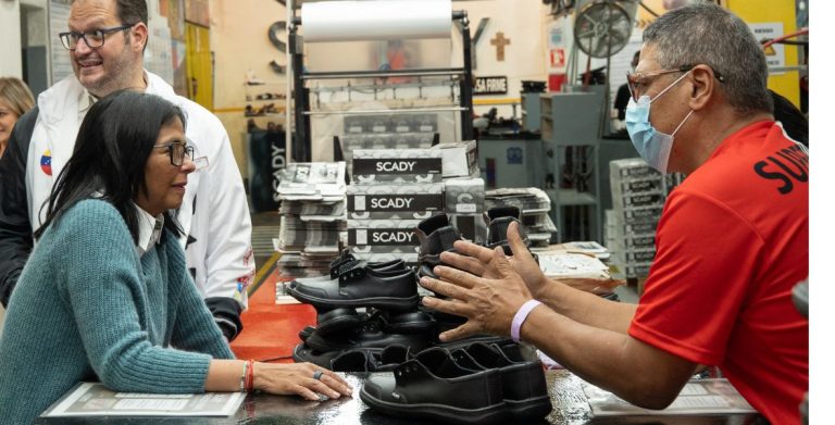 Presidenta (E) Delcy Rodríguez realiza visita a las instalaciones de la planta de calzado «Scady»
