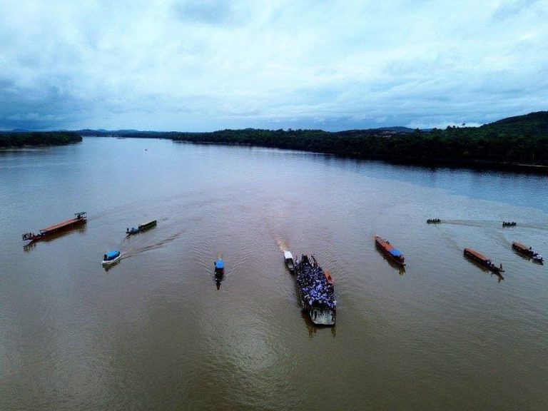 Habitantes de Amazonas participan en masiva peregrinación acuática contra las sanciones