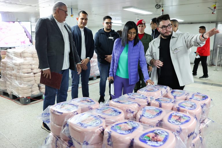 En una jornada de supervisión productiva en la planta de alimentos Río de Oro, la Presidenta (E) de la República, Delcy Rodríguez, resaltó la victoria de la industria nacional frente al bloqueo económico. La Mandataria (E) informó que el país logró garantizar un abastecimiento del 99,5% de los alimentos a través de la producción interna y la sustitución estratégica de importaciones.