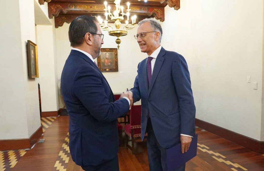 El ministro del Poder Popular para Relaciones Exteriores, Yván Gil, sostuvo encuentro este lunes con el recién designado embajador de Italia en Venezuela, Giovanni Umberto De Vito, quien entregó sus Copias de Estilo al Gobierno Bolivariano.