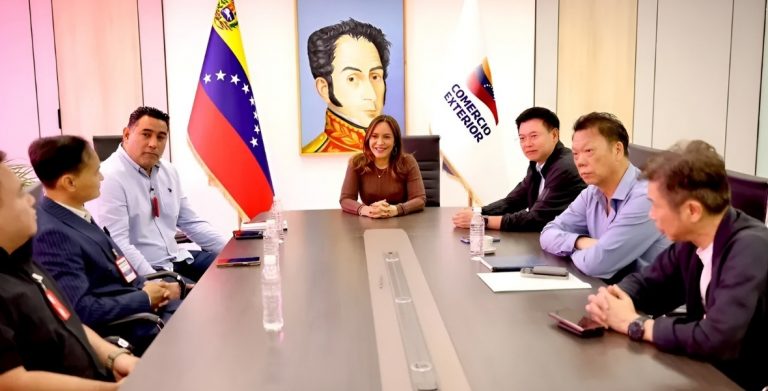 La Ministra del Poder Popular para el Comercio Exterior, Coromoto Godoy, sostuvo un encuentro con una delegación de empresarios de la Cámara de Comercio de Guangdong, con el objetivo de dinamizar los procesos de exportación de productos soberanos hacia el gigante asiático. El intercambio se centró en consolidar la presencia de rubros bandera como el cacao, chocolate y café en el mercado del sur de China.